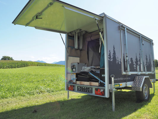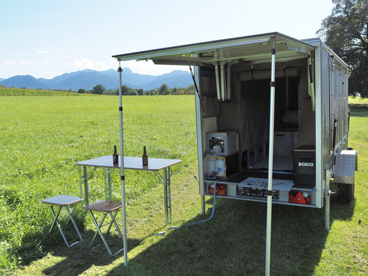 Der Standort ist Rosenheim, bei Interesse können wir den Anhänger gerne in der Halle aufbauen. Preislich haben wir uns EUR 10.000 vorgestellt, abhängig davon welches Zubehör on top dazukommen soll oder nicht (dometic Kühlbox, ecomat Heizung, ecoflow Akku, Boxio). Die originalen Wandtaschen werden natürlich mit beigelegt.“